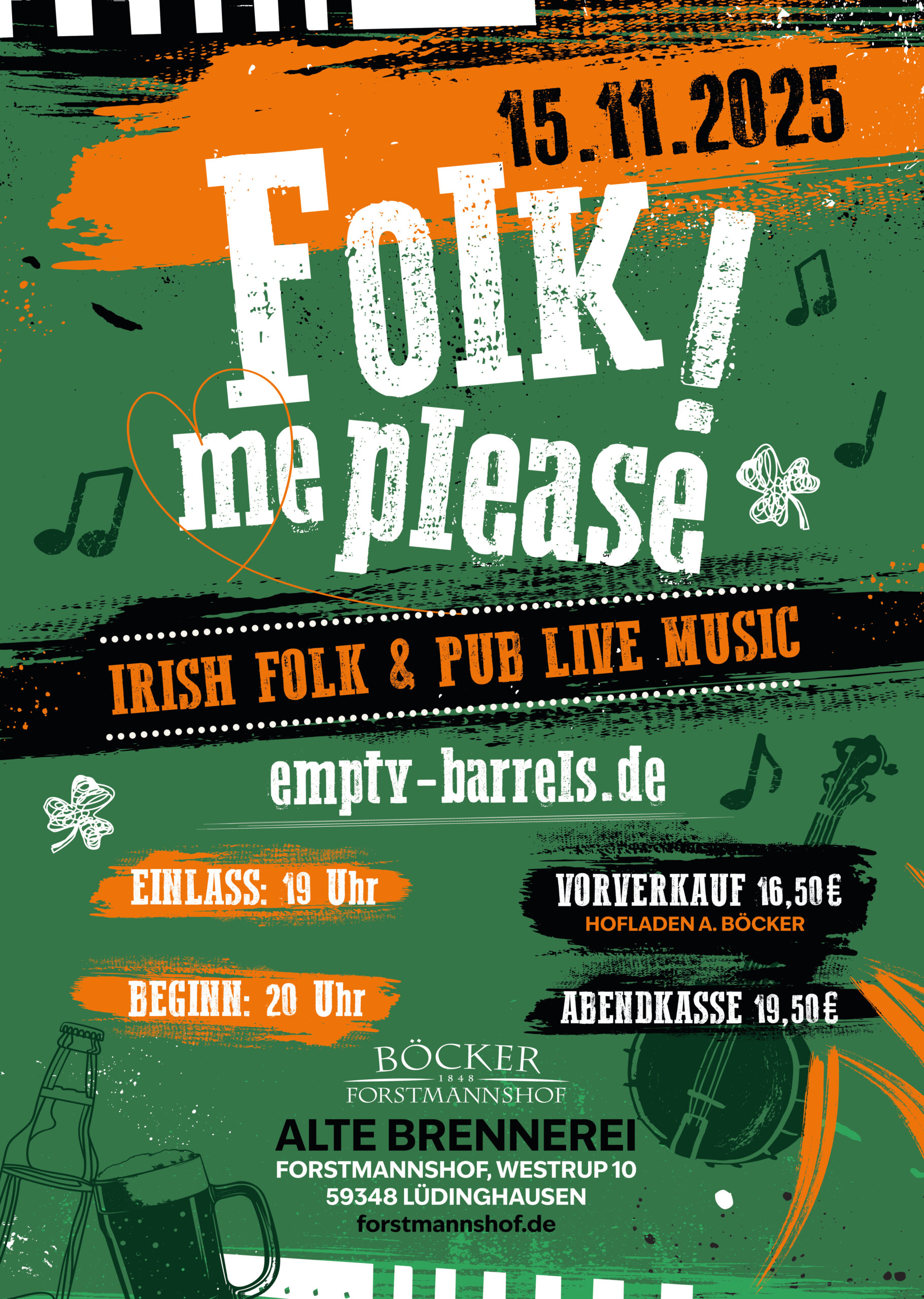 Erlebe Irish Folk live – „Folk! Me Please“ am 15.11.2025 in Lüdinghausen