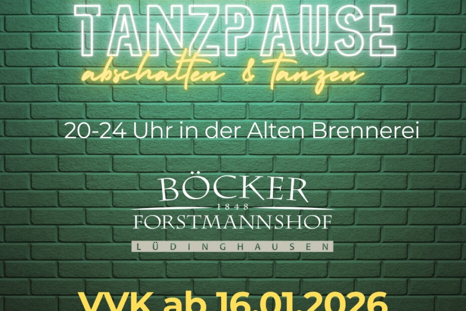 Am 06.02.2026 ist es soweit: In der Alten Brennerei auf dem Forstmannshof in Lüdinghausen steigt Mamas Tanzpause – abschalten und tanzen! 💃 Von 20–24 Uhr gehört die Tanzfläche allen Frauen, die sich eine Auszeit vom Alltag gönnen wollen.